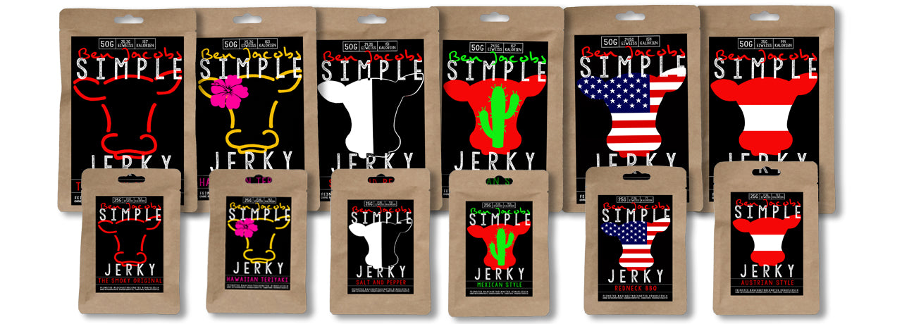 En nuestra tienda ofrecemos 11 variedades diferentes: Desde mezclas de especias tradicionalmente americanas hasta preparaciones con un toque europeo. Aquí hay todo lo que el corazón de un amante del jerky desea.