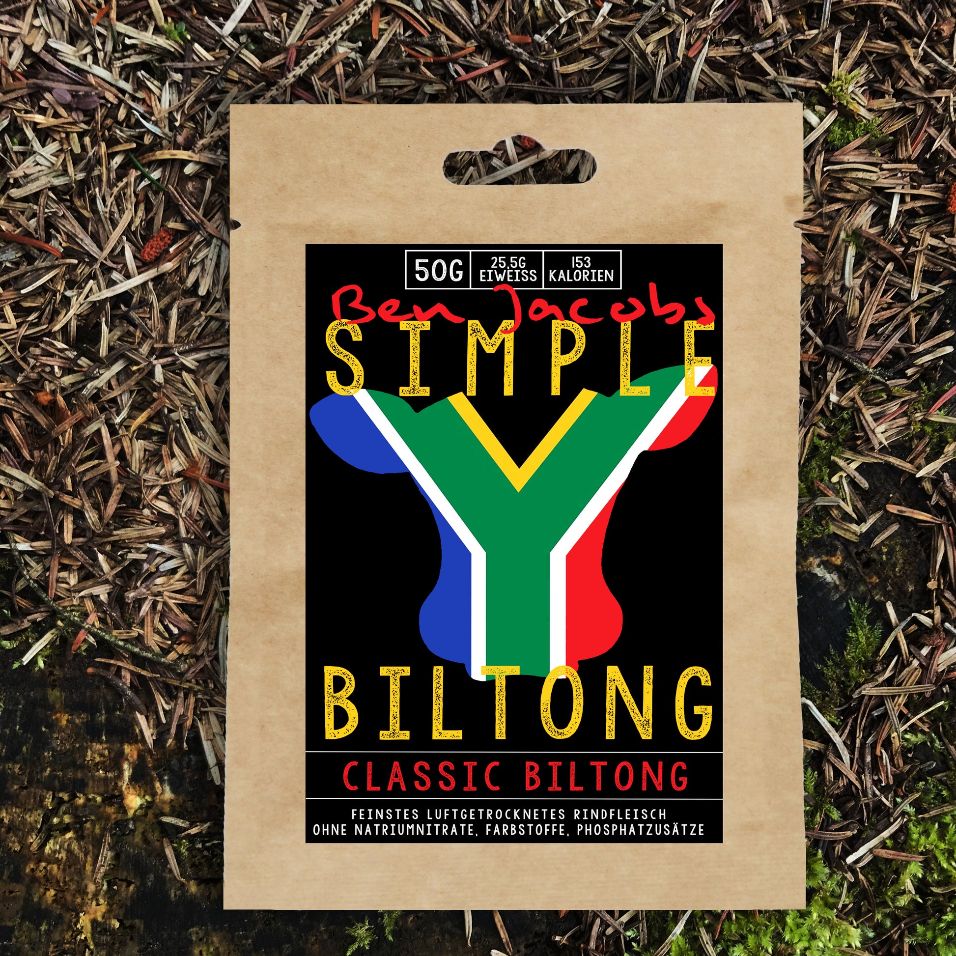 Según la tradición sudafricana, nuestro Classic Biltong se seca al aire durante varios días. Sin calor, sin humo de madera. Semillas de cilantro, pimienta blanca y negra, así como cebolla y sal, le dan a nuestro Classic Biltong aromas sutiles en los que no se pierde el puro sabor de la carne. Gracias al secado al aire, cada pieza permanece suave y tierna.